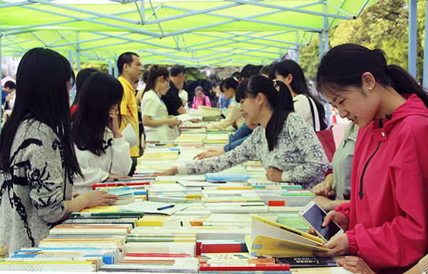 本网讯(学生记者 刘璐)4月23日是第20个世界读书日,我院围绕“点燃读书激情 共建书香文理”的主题,在城中校区体育场举办了首届“泮池读书季”活动。当天,全院师生现场选购图书1500种,通过微信平台获赠期刊3000本。院长助理曹骥,图书馆、院团委相关负责人及300余名师生参加启动仪式。