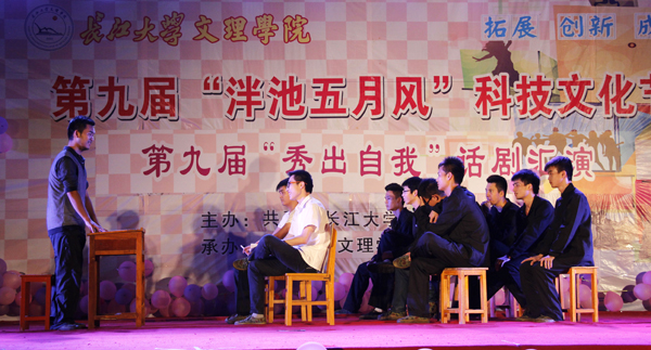 本网讯 (见习记者 陈玥 秦娟)6月10日晚,第九届“秀出自我”话剧汇演在我院西区篮球场璀璨落幕。当晚,我院党委书记高迎斌、副院长郭睦庚、党委副书记汪邦柱出席晚会,各系部相关负责人及千余名师生现场观看演出,共享艺术盛宴。