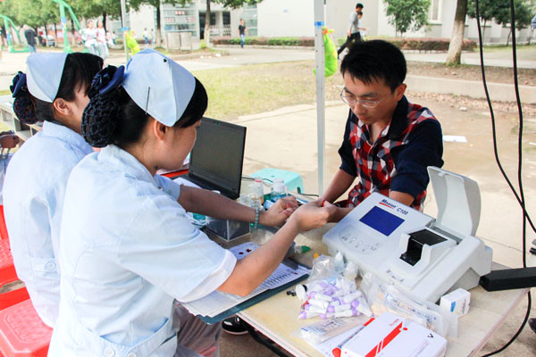 在献血队伍中,有许多同学是2015级新生,他们大多数是第一次参加献血活动,来自园林5151班的宋晓佳同学就是其中的一员,她说:“第一次献血难免有点害怕,但是一想到我的血液将来会帮助到其他人,心里就很高兴。”