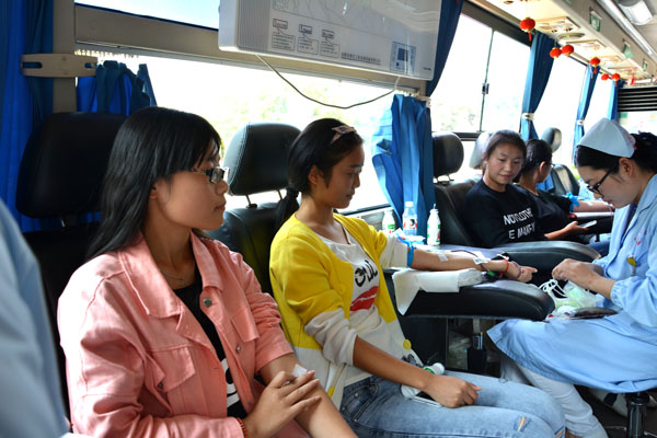 此项活动得到了人文系、外语系、工商系和医护系青年志愿者的积极响应,他们顶着烈日,在校园里发献血宣传单,为同学们解答献血的有关知识,从指导献血者填写报名表到身体检查、血液初筛、献血、领取纪念品和无偿献血证,每一个处都留下志愿者忙碌的身影。