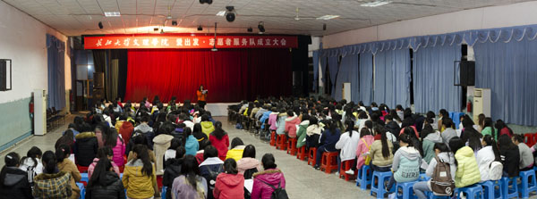 本网讯(见习记者 周思奇 程泽泽)“尽己所能,为爱出发。”11月17日晚,我院在工会大厅举行“爱出发”志愿者服务队成立大会。学工处相关老师及学生志愿者参加大会。