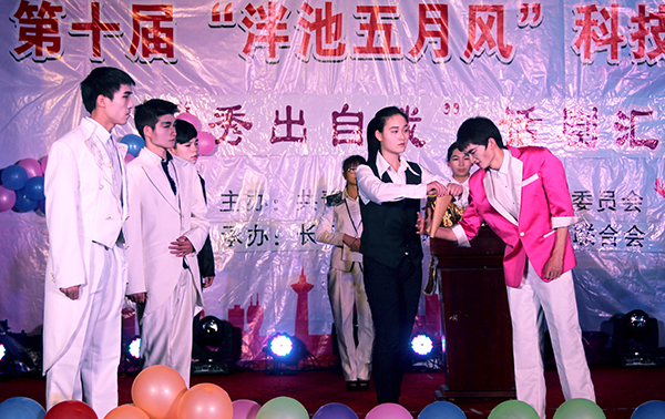 本网讯(记者 刘磊 学生记者 李华东 刘璐)5月26日晚,第十届“秀出自我”话剧汇演在城中校区工会大厅结束。我院党委副书记孙细望,各系部相关负责人及百余名师生参加活动。
