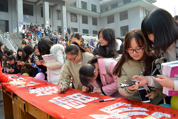 同学们踊跃参加“志愿服务我先行”签名活动