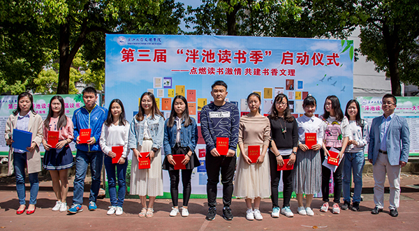 仪式上,会计5141班的聂俊柔、法学5151班的刘振东、中师5163班的汪瑞祺等十名同学受到表彰,被授予“读书之星”荣誉称号,院团委书记刘磊、图书馆馆长让华为获奖者颁发荣誉证书。