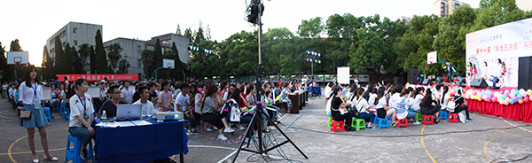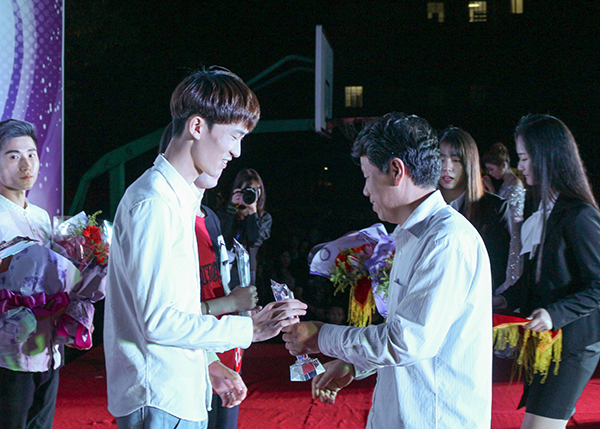 晚上七点的篮球场被璀璨的灯光环绕,充满激情的选手在此展开巅峰对决。同学们用震撼心灵的声音唱响音乐梦想、表达对学院的美好祝愿。