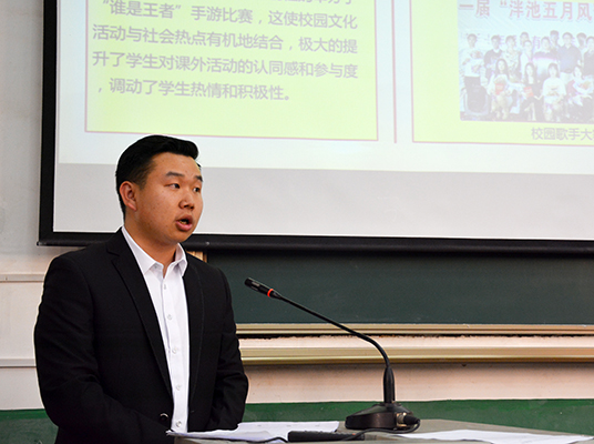 机电与信息工程系、人文与传媒系、建筑与设计系、工商管理系、经济与贸易系、外国语系的团总支负责人,分别依次汇报了2017年度共青团工作,展示了各系的特色和风采。评委们着重从思想引领、组织建设、特色创新、学风建设、工作成效等方面进行了考评。