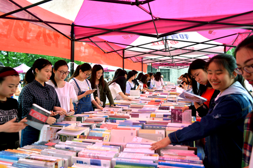 本网讯(记者 吴秀丽)4月22日,我院以“点燃读书激情 共建书香文理”为主题的第四届“泮池读书季”活动在城中校区七舍前举行启动仪式,仪式内容丰富,表彰2017年度“读者之星”、开展图书展销会、免费赠阅期刊、推荐大学生必读百本图书、介绍歌德电子阅读机使用方法。