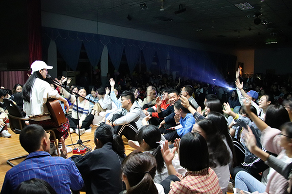 本网讯(学生记者 满盟 见习记者 谷欣格 唐昊)11月3日晚上7点,“大冰的小屋”百城百校音乐会走进我院。500余名喜爱大冰的同学在城中校区工会三楼参加活动。