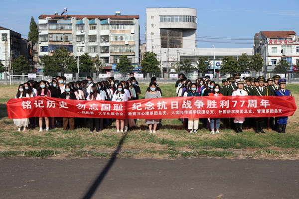 本网讯(通讯员 王倩)9月3日清晨,院团委在城中校区运动场举行国旗下的讲话活动,纪念中国人民抗日战争暨世界反法西斯战争胜利77周年。