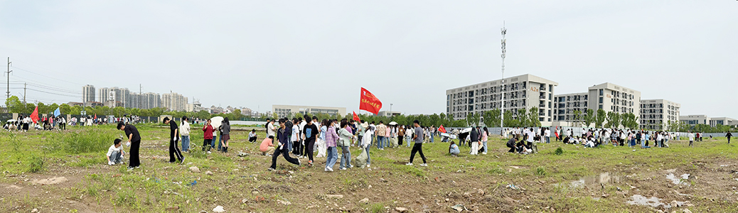 在A栋宿舍楼前,师生们经过一个多小时的劳动,共整理出各类杂物60余袋,让校园环境更加整洁。