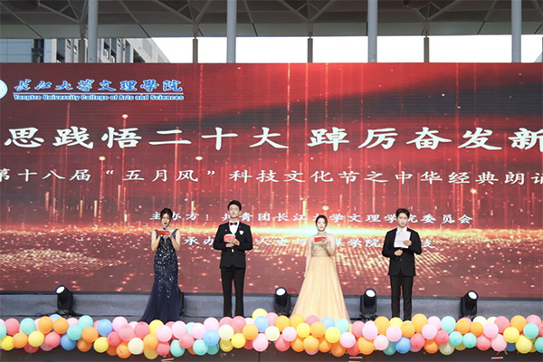 本网讯(记者 刘磊 通讯员 梁玥)仲夏五月,艺术之花开满校园,红色基因浸润。5月27日晚,人文与传媒学院第十八届五月风科技文化节之中华经典诵读大赛举办,舞台是赓续红色血脉、弘扬革命精神的最好课堂。当晚,校领导学院院长李兴祥,学院副院长向宇、肖寒芝,院长助理郭明虎出席活动,相关职能部门、各教学单位负责人及三百余名师生代表齐聚一堂,共赏文化盛宴,感受红色精神。