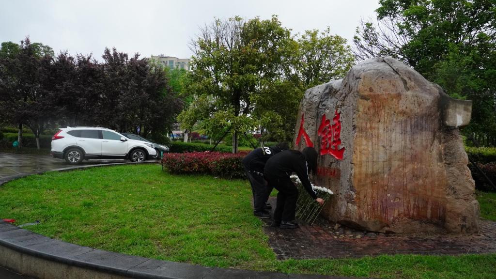 4月1日下午院团委组织学生干部代表前往宝塔湾“人链”纪念碑,带着敬意与思念祭奠三位逝去的英雄——陈及时,何东旭,方招。