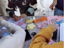 活动的主题为“冬日暖阳,巧手生花”,本次活动分为两个环节,一是互换祝福语活动,二是剪窗花活动。此次活动的举办吸引了本校学生的积极参与,学生们剪出了样式不一的窗花,在互换祝福语的活动中,用便签纸传递自己的祝福,并且通过抓取他人的便签来感受不同人在冬日所传递的温暖。活动火热开展,圆满成功。