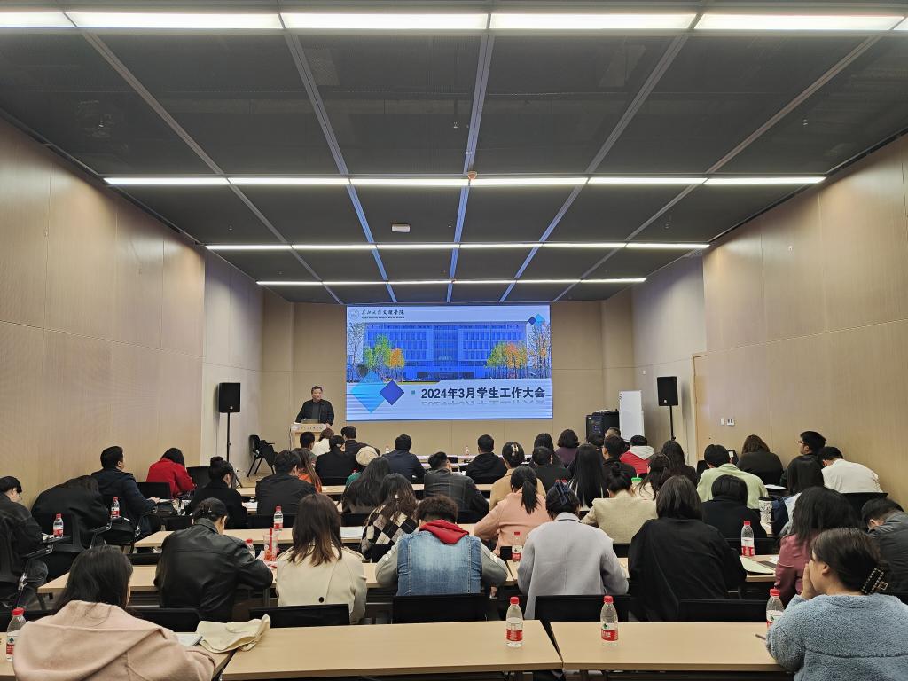 3月28日下午,williamhill官网在图书馆103学术报告厅召开3月份学生工作大会。校领导党委副书记李则俊出席会议。党委组织部、党委学生工作部、学生就业指导处、团委、党委保卫部相关负责人,各教学单位党总支书记、副书记和全体辅导员参加会议。会议由党委学生工作部部长李刚英主持。
