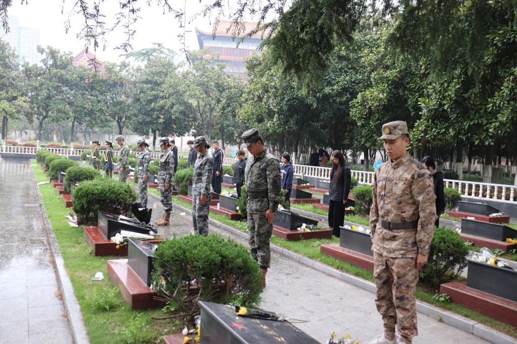 征兵工作站郭松明老师鼓励现场学子们:“要立足当下,传承先烈遗志,庚续红色血脉,追寻先辈的足迹,脚踏实地奋勇向前。”“站在烈士墓碑前,我深感历史的厚重与先烈的伟大。作为参军复员的老兵,我们更要承担起时代赋予的责任。”学生代表李炎培表示。