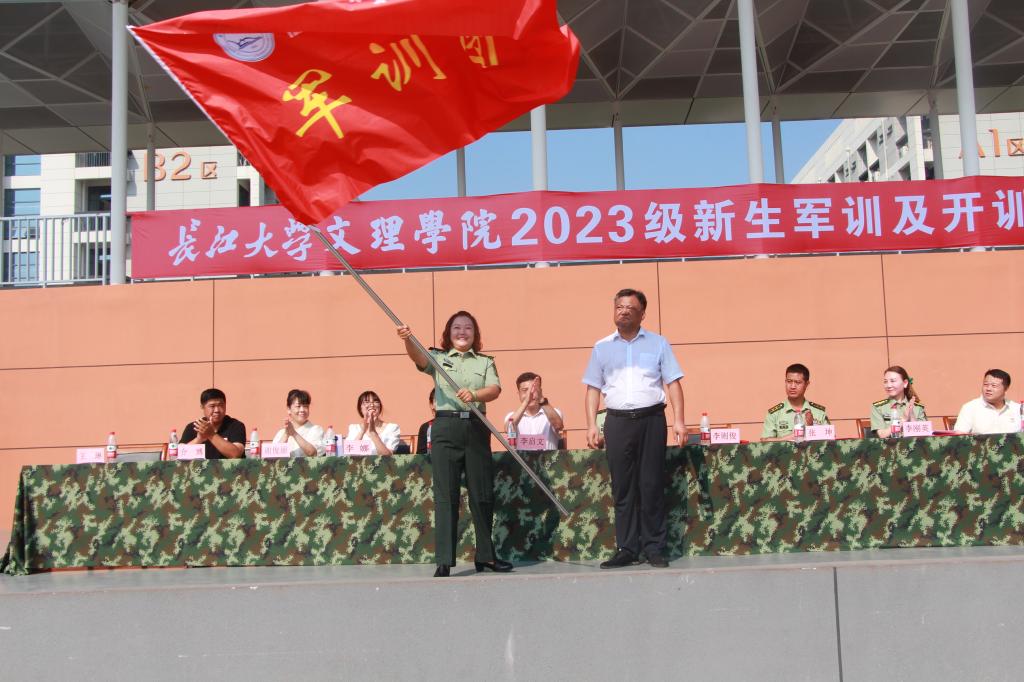 9月10日上午,我院2023级学生军训开训及授旗仪式在操场举行。党委副书记李则俊,武警荆州支队副支队长张坤,执勤一大队教导员高冠鑫,党委学生工作部部长李刚英出席活动。各营教导员、全体带训教官、新生辅导员及2023级学生参加了开训及授旗仪式。活动由学生工作部部长李刚英主持。
