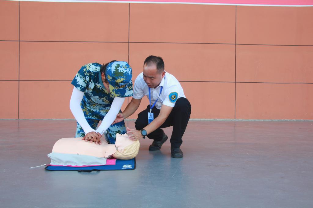 为让大家获得更加直观的操作体验,理论教学结束后,邀请新生分批上前用人体模型进行交替演练。