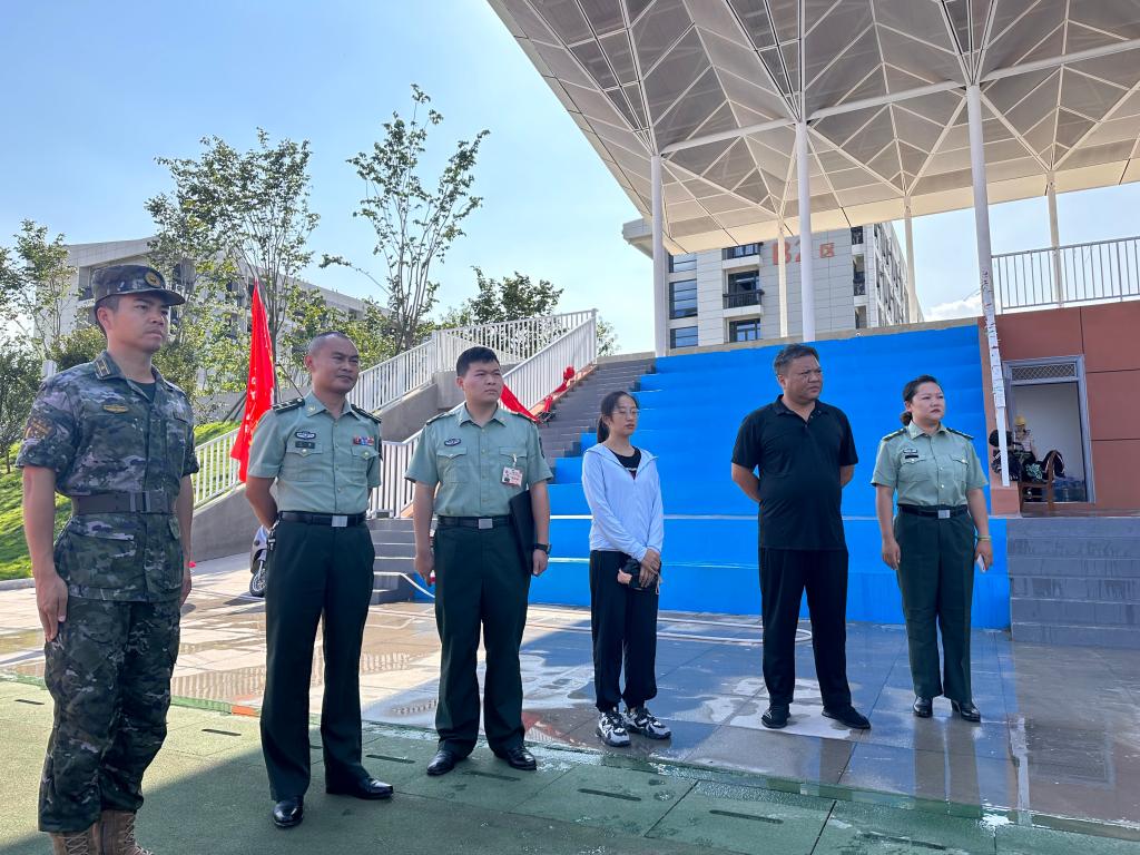9月15日下午,荆州军分区战备建设处中校参谋江海、荆州市教育局基础教育科干部田芳一行人来我院检查新生军训工作。学院党委副书记李则俊及学生工作部相关负责人参与检查。