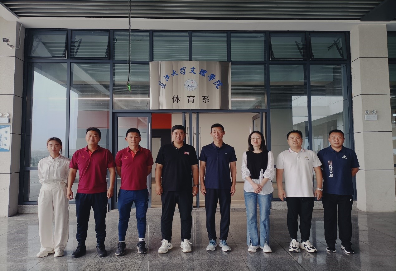 5月30日下午,武汉华夏理工学院体育学院院长刘涛、副院长赵燕、实习实训中心主任付炜、王鹏老师一行4人来我院考察交流。我院体育系主任介博、体育教育教研室主任贺鸣杰、学生体质测试中心主任王晟、体委办公室黄贝参加了活动。