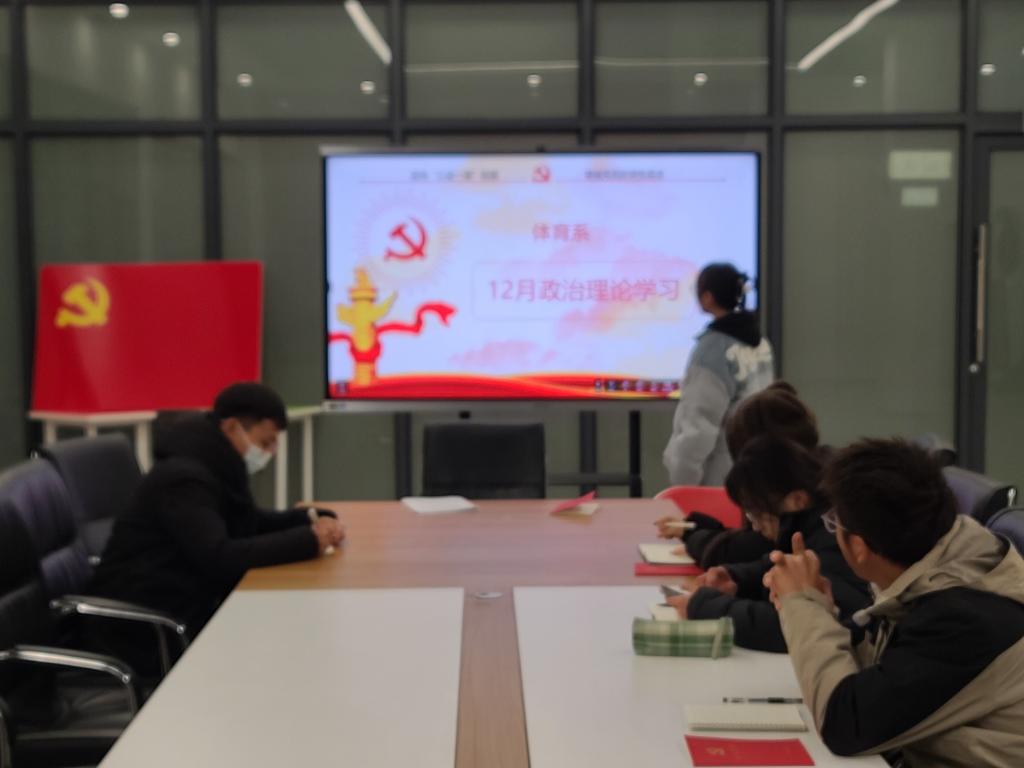 本网讯(通讯员 张喆)12月21日,体育系学生党支部在体育系309会议室开展了12月份政治理论学习,会议由门世豪老师主持。