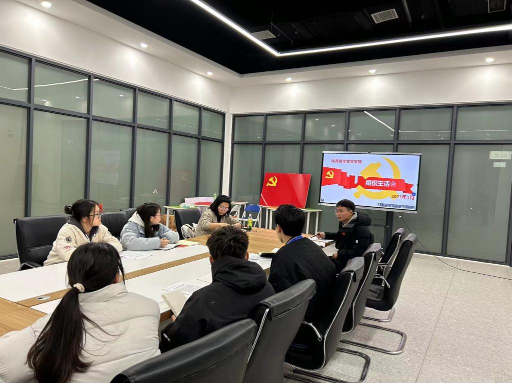 本网讯(通讯员 卢馨怡) 为深入学习贯彻党的二十大精神,进一步增强党员“四个意识”,12月28日下午,体育系学生党支部在309会议室开展了2023年专题组织生活会暨民主评议大会。会议由体育系学生党支部书记门世豪主持,教师党支部列席代表邱凤霞老师以及支部全体学生党员参加了会议。