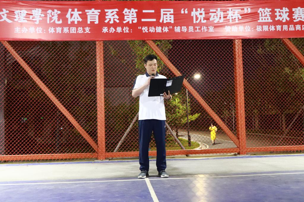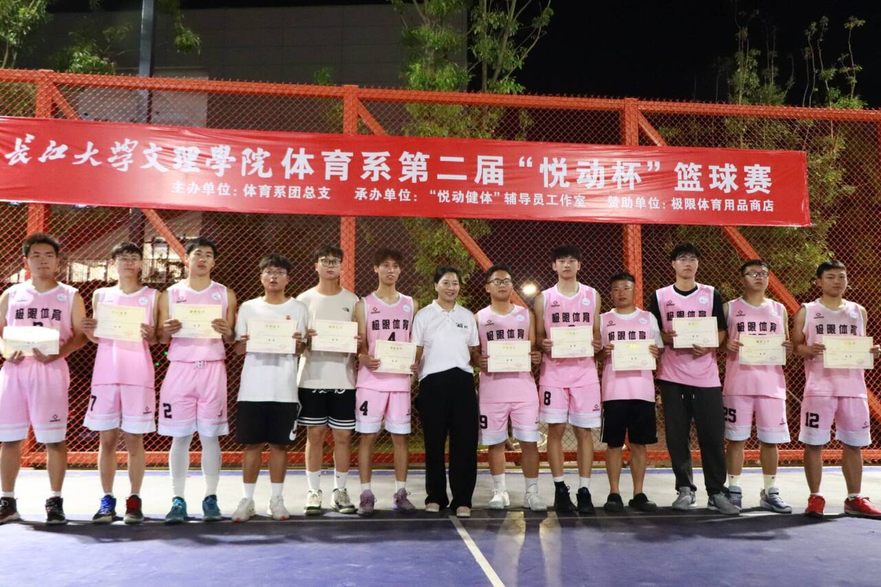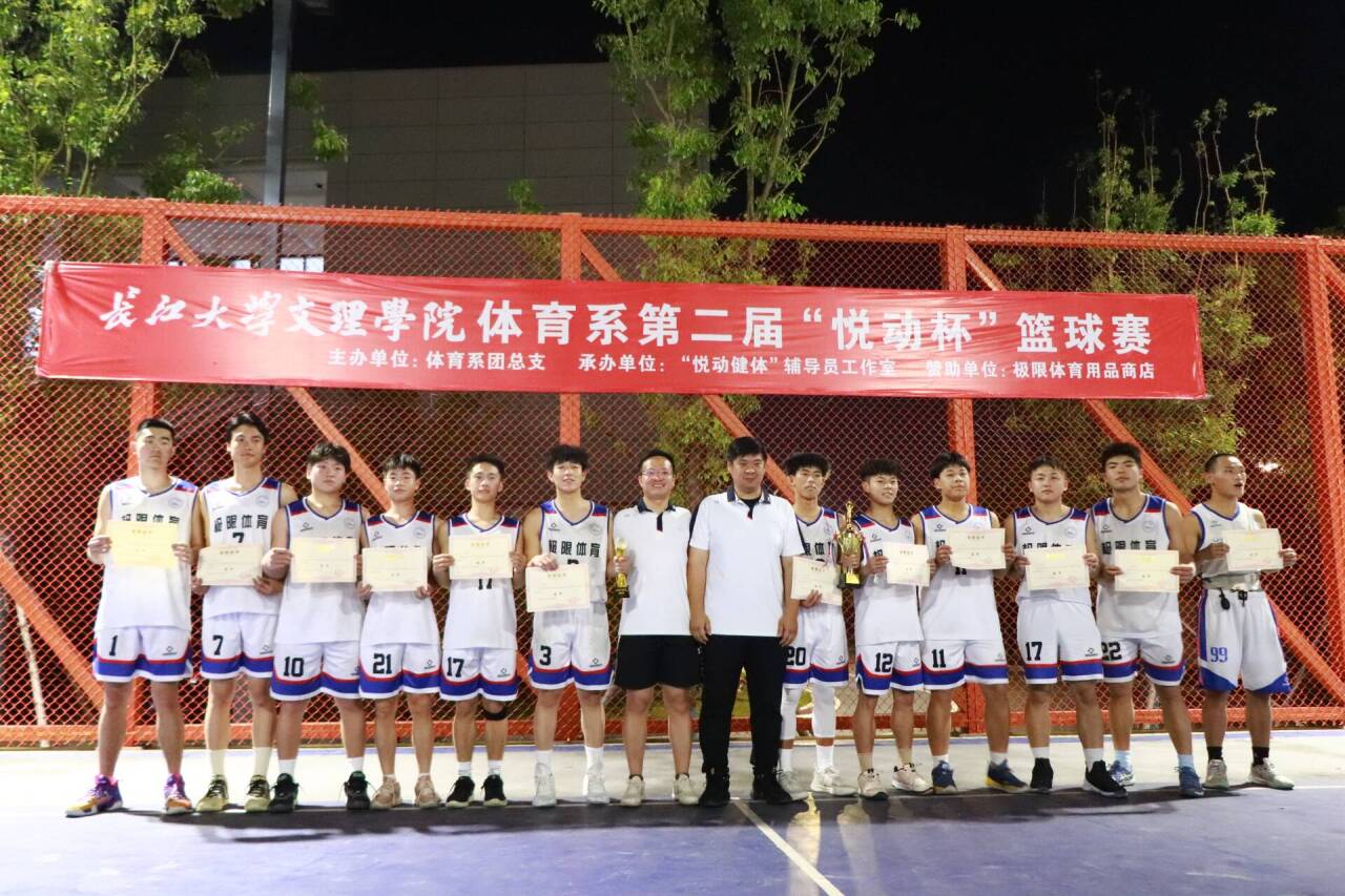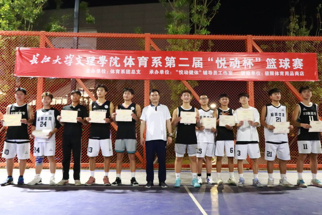 (本网讯 通讯员张欣)5月8日晚,由体育系团总支主办,“悦动健体”辅导员工作室承办的体育系第二届“悦动杯”篮球联赛,在网红篮球场举行隆重的闭幕仪式。体育系主任介博、党总支书记邹姜、副主任胡杜娟、辅导员门世豪以及各班班主任与任课教师出席了闭幕式。