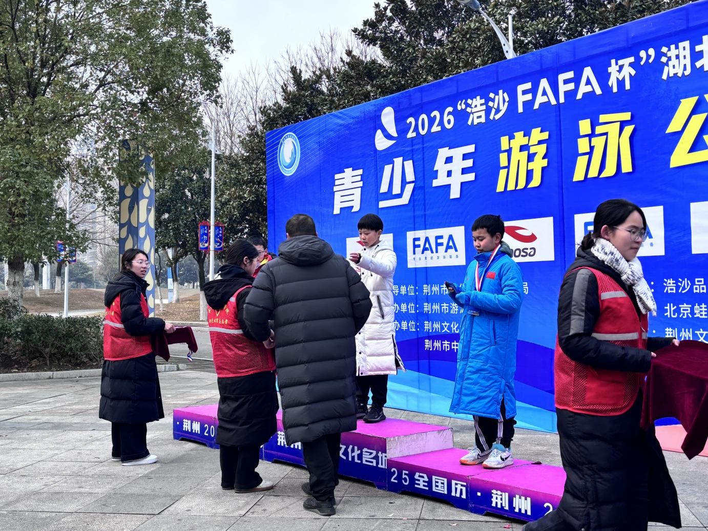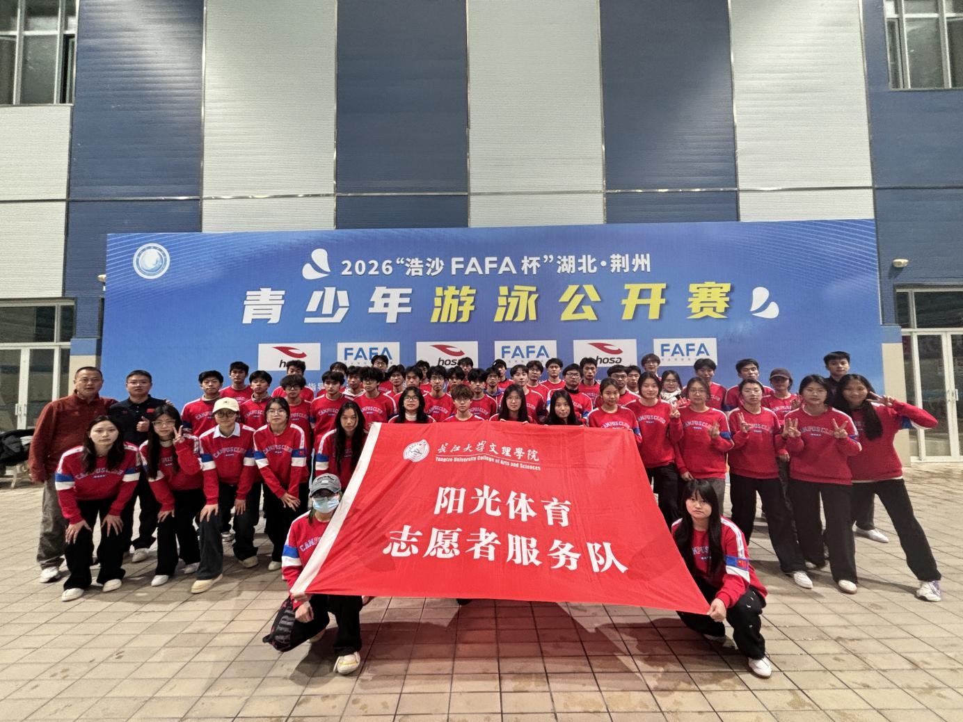 本迅网(通讯员 孙梦烁)2026年1月2日至3日,浩沙FAFA杯游泳赛在荆州市游泳馆顺利举行,体育系48名志愿者以专业服务为赛事保驾护航,用青春行动诠释志愿精神。