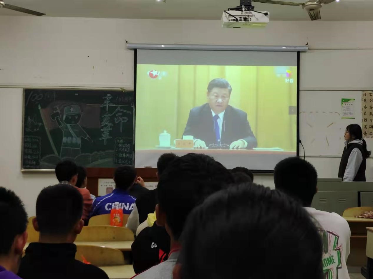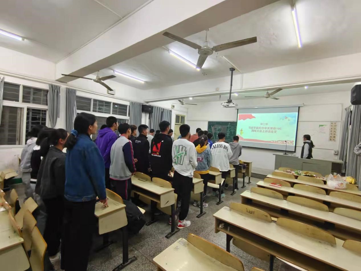 以史为鉴,可以知兴替;抚今追昔,辛亥革命先驱的深切夙愿,已经或正成为现实。而引导当代青年重温那段曲折艰辛、可歌可泣的历史,进而提高当代大学生的思想觉悟,加强自身本领,是团组织、团干部需要掌握的“基本功”。体教5211班的同学们首先了解周年大会的基本情况,之后学习了汪洋常委在会议中指出的的重要内容,学习了中国共产党委员会主席万鄂湘的发言与中华全国归国华侨联合会主席万立骏的发言,之后在全班一起唱响红色经典歌曲后,观看了习近平主席在周年大会讲话的视频。