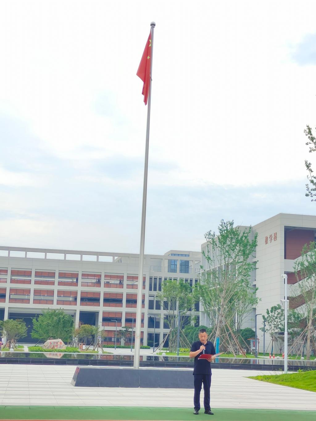 本网讯(通讯员 张欣)7月3日清晨,体育系举行以“红心向党,华彩少年”为主题的升旗仪式,全体师生齐聚国旗下,并邀请学院院长助理曹骥老师出席此次庄重仪式。
