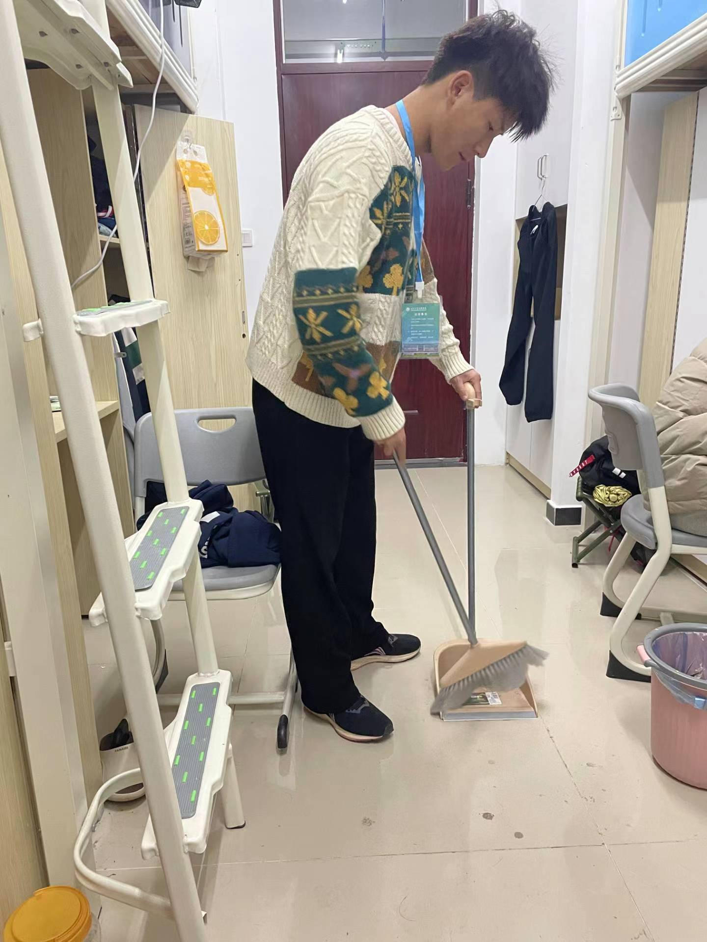 为展现体育系良好风貌,给同学们提供温暖、舒适、干净的寝室环境,11月25日下午,体育系团总支学生会在主席团带领下,全体成员共同走进学生寝室开展了以“我为同学办实事•寝室卫生清扫与检查”为主题的志愿服务工作。