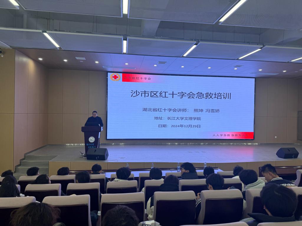 本网讯(通讯员 荣家豪)为提升学生应对突发事件及意外伤害的应急救护与自救能力,掌握基本应急救护知识和技能,切实保障生命安全,助推平安校园建设,12月29日晚上6点,体育系联合沙市区红十字会,在教学楼B112报告厅开展急救培训活动,共有百余名学生积极参加。