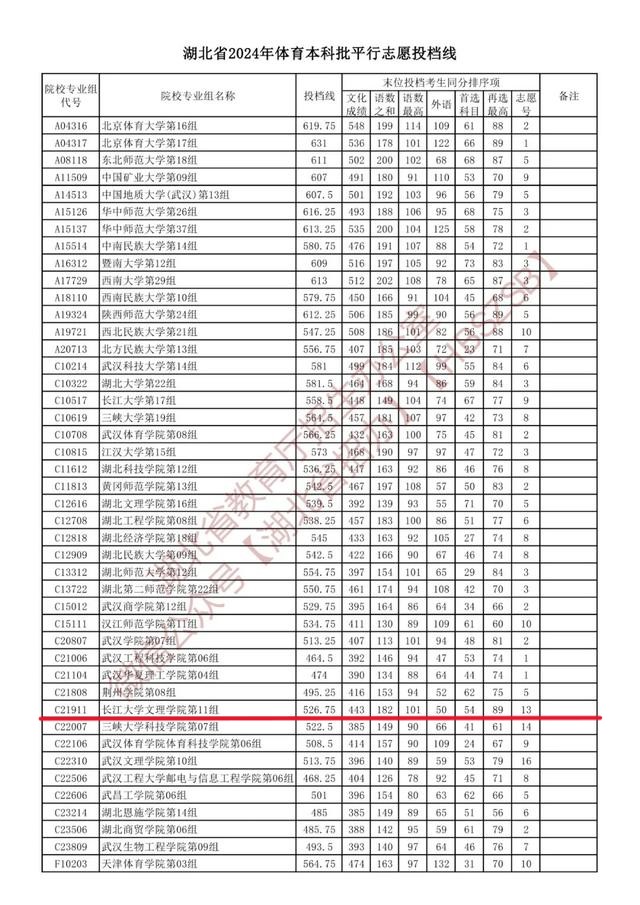特别是,湖北省本科招生工作取得突破性进展,共录取本科生52人,生源质量和数量提升。投档线526.75分,高资格线71.75分,体育专业组投档线进一步提升,位居湖北省同类高校第一名,再创佳绩。