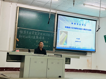 讲座现场座无虚席,秩序井然。时立新教授以“大一综合症现象及克服”、“体育专业学生实践能力及培养”、“体育专业学生创新创业能力培养”三个主题为体育系师生进行了阐述。教授提出,学好专业知识并将专业知识运用到实践中是培养同学们实践能力的基础,在此基础上培养创新意识和实践能力将使同学们在创业的道路上越走越远。最后,教授鼓励同学们努力学习专业知识并将专业知识运用到实践中来以培养实践能力,拓宽视野,在创新创业的道路地勇敢的迈出第一步。