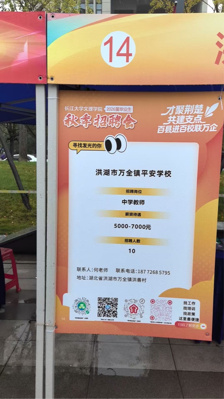 从现场招聘信息看,基础教育领域师资需求旺盛。多家学校提供了中学教师岗位,薪资待遇集中在5000-7000元/月,招聘人数较多,展现了地方教育事业对新鲜血液的渴望。例如,洪湖市的两所学校均计划招聘10名中学教师;荆州成丰学校也提供了10个教师岗位,另有学校专门招聘初中政治教师2名。各展位前,毕业生们积极投递简历,与招聘单位负责人深入交流,详细了解岗位要求、发展前景及待遇情况。