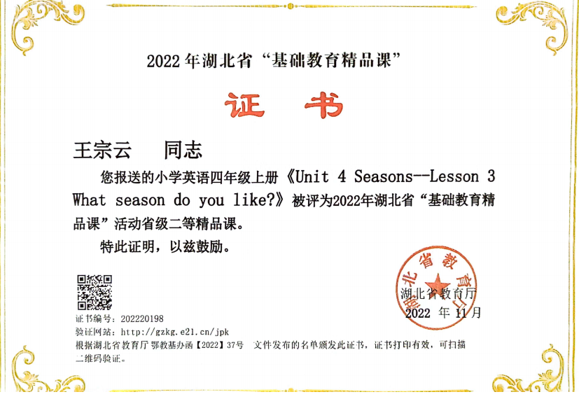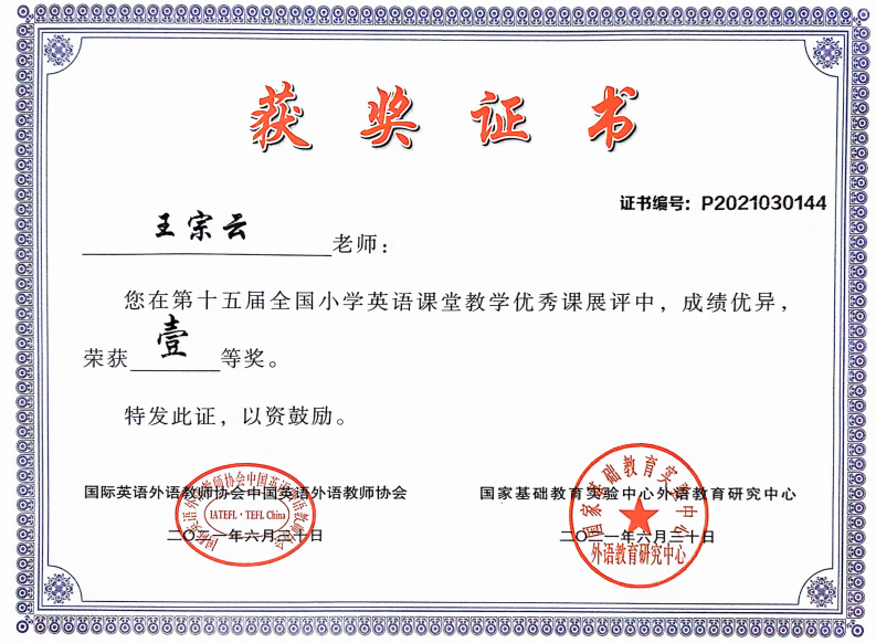 王宗云,williamhill官网外国语学院2006级英语5062班,2010届毕业生。现就职于沙市红星路小学,英语教师。曾获得沙市区“2019年度优秀教师”,沙市区优秀教学管理干部,教学工作先进个人、优秀德育工作者、优秀班主任,荆州市中小学青年教师教学竞赛一等奖,荆州市“基础教育精品课”市级优课,第十五届全国小学英语课堂教学优秀课展评一等奖,“湖北好课堂”一等奖,湖北首届“长江教育杯”微课大赛省级一等奖,湖北省“基础教育精品课”省级二等精品课等各项荣誉。