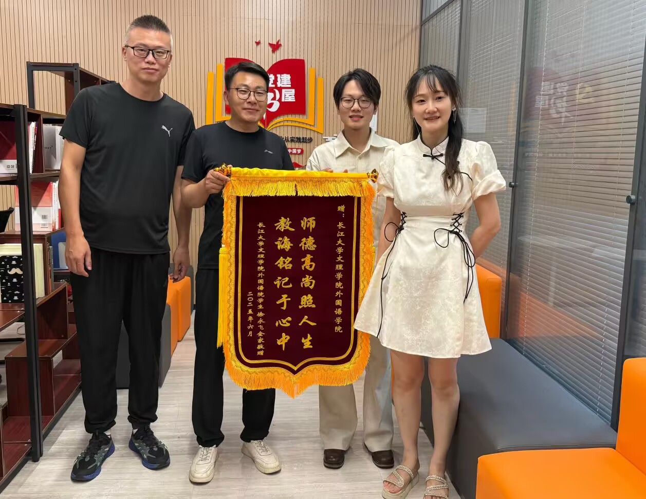 ​外国语学院毕业生感恩行动暖人心 锦旗寄情、合影留念、聘书传薪共谱师生情