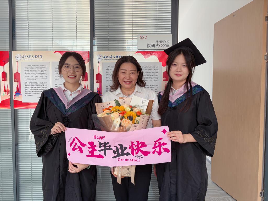 6月13日上午,毕业生代表自发组织了一场温馨的合影活动。他们手持鲜花与横幅,邀请外国语学院院长许晓艳教授共同留影。许晓艳院长与毕业生们亲切交谈,回忆共同度过的校园时光,并寄语毕业生:“愿你们带着外语人的自信与担当,在未来的道路上乘风破浪。”毕业生们纷纷表示,许院长的教诲如明灯般照亮前行之路,这份师生情谊将永远铭记于心。