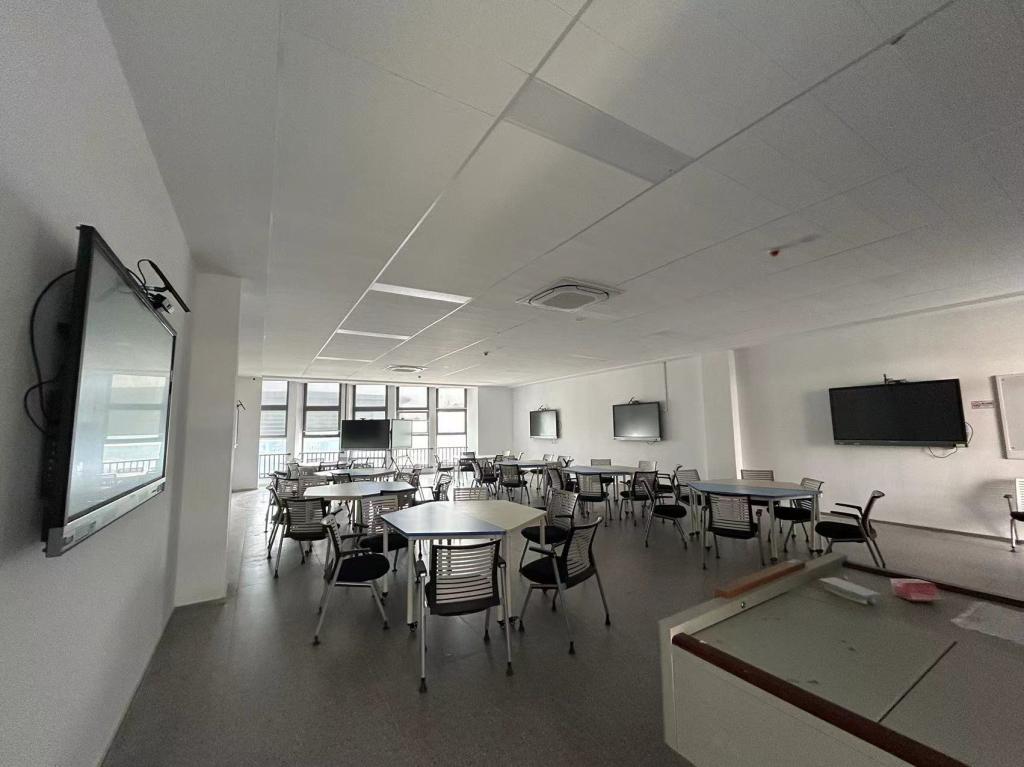 外语情景仿真实训室包含青鹿广播电视设备智慧课堂系统和纳米智慧黑板、高清摄像机、梯形讨论桌等设备,为学生营造了多情景的仿真教学环境。