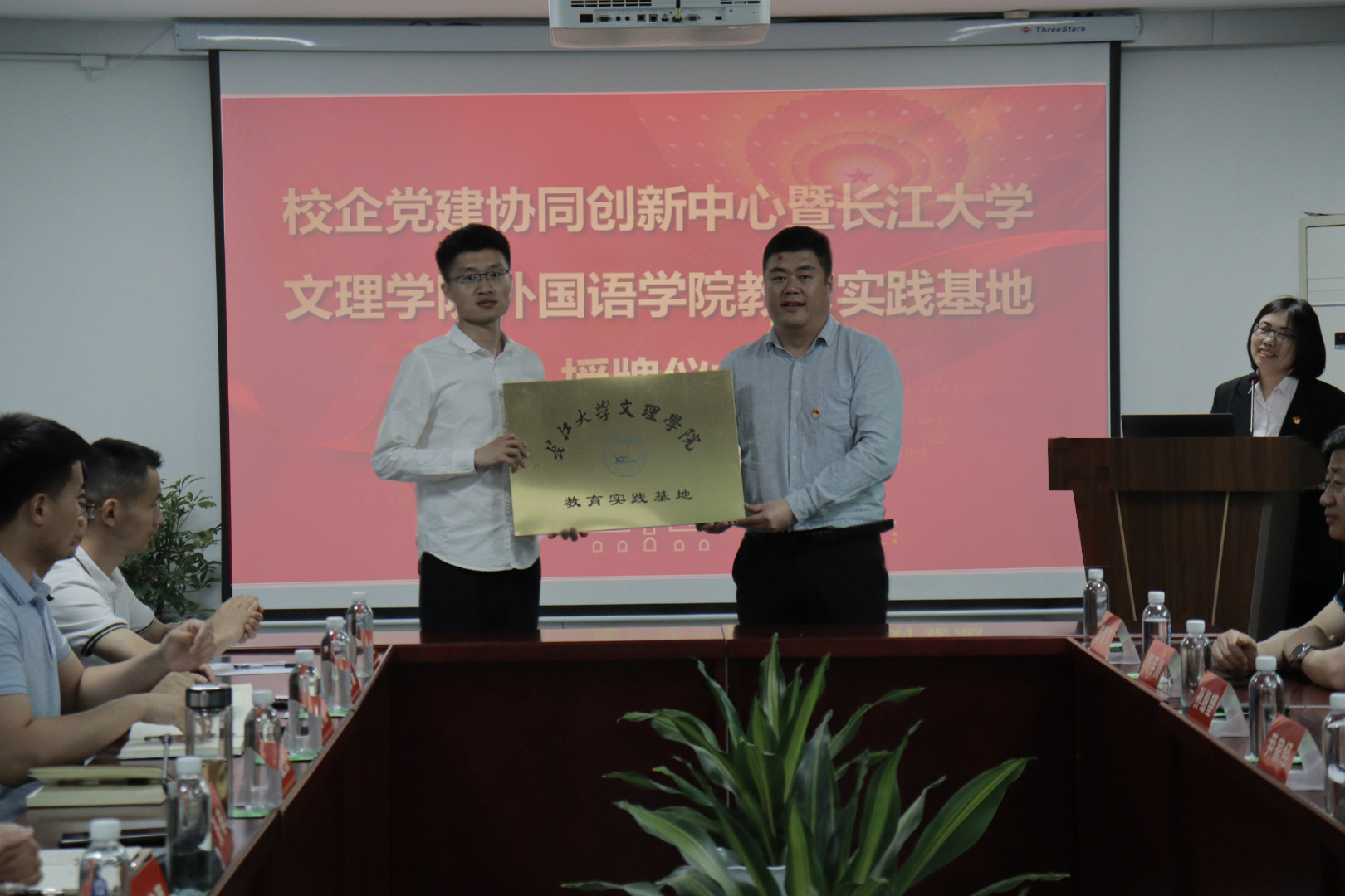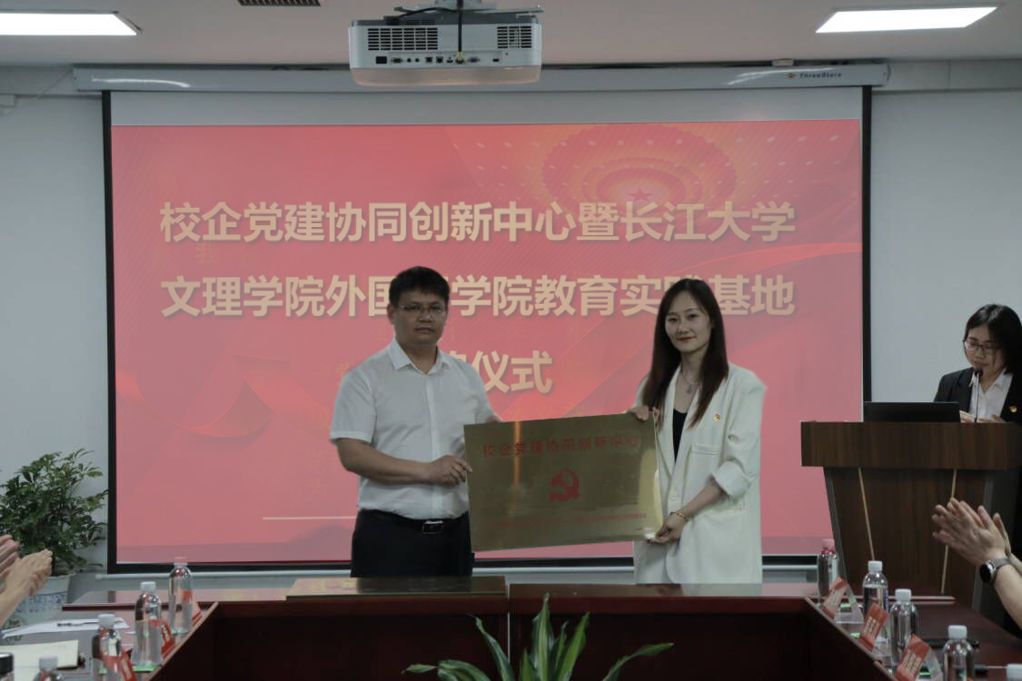 本网讯(记者 刘磊)4月21日下午,在沙市洋码头文创园投资建设有限公司会议室,外国语学院党总支和荆州城发教育发展有限公司党支部党建共建授牌仪式举行。学院领导班子成员、城发教育公司领导班子成员出席仪式,学院相关职能部门和外国语学院负责人,以及双方单位党支部党员代表参加仪式。外国语学院教工党支部书记韩翠萍主持仪式。