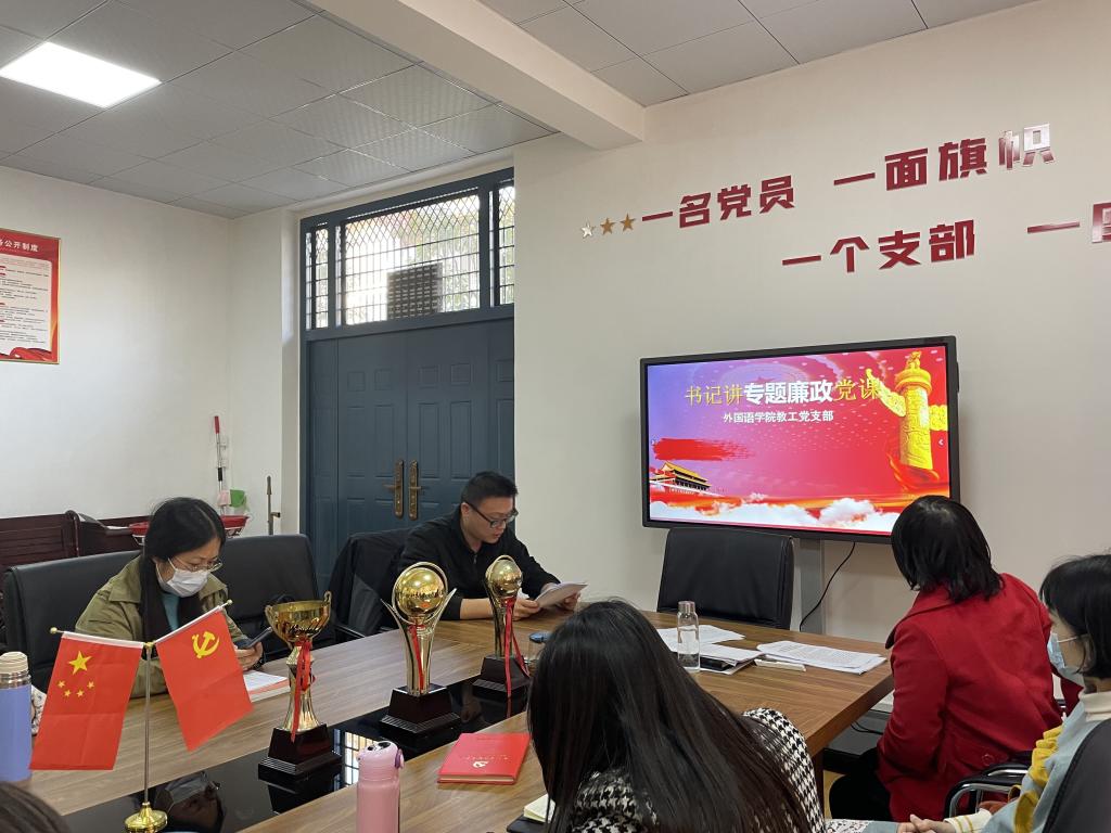 (通讯员 许静婷)11月18日下午,外国语学院召开十一月政治学习和支部主题党日活动。会议由付春霞老师主持,全体教师参加。