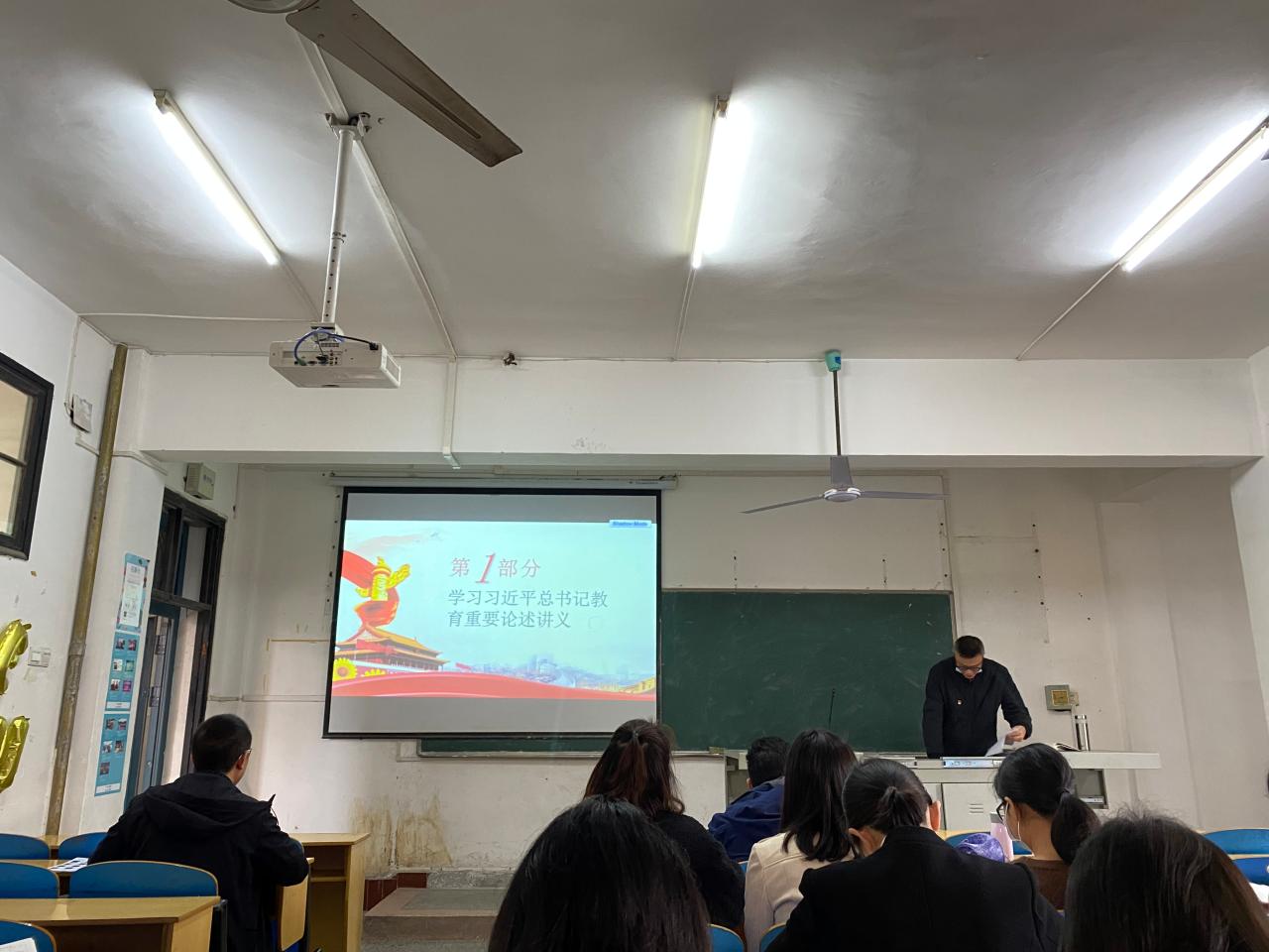 会议伊始,全体教师进行政治理论学习。对习近平总书记教育重要论述讲义;习近平总书记在中央党校(国家行政学院)中青年干部培训班开班式上的重要讲话;习近平总书记在纪念中国人民志愿军抗美援朝出国作战70周年大会上的讲话;习近平总书记在深圳经济特区建立40周年庆祝大会上的讲话;教育部关于印发《高等学校课程思政建设指导纲要》的通知;中共湖北省委十一届七次全体会议精神进行集体研究学习和探讨。