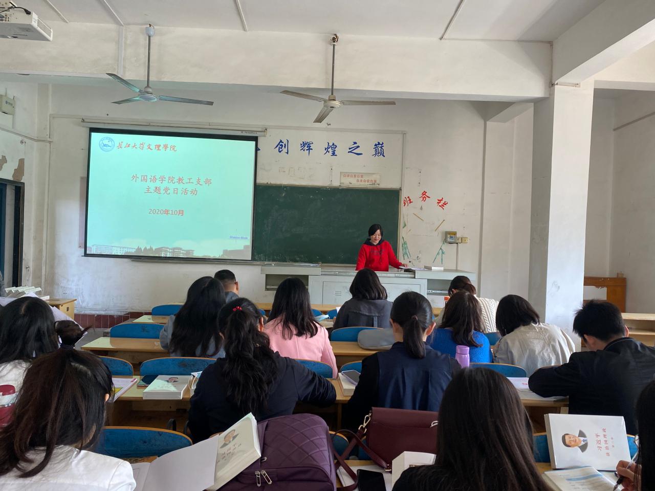 (通讯员 拓颖)10月22日中午12点半,外国语学院在一教207召开支部主题党日活动和政治学习。会议由付春霞老师主持,院全体教师参加。