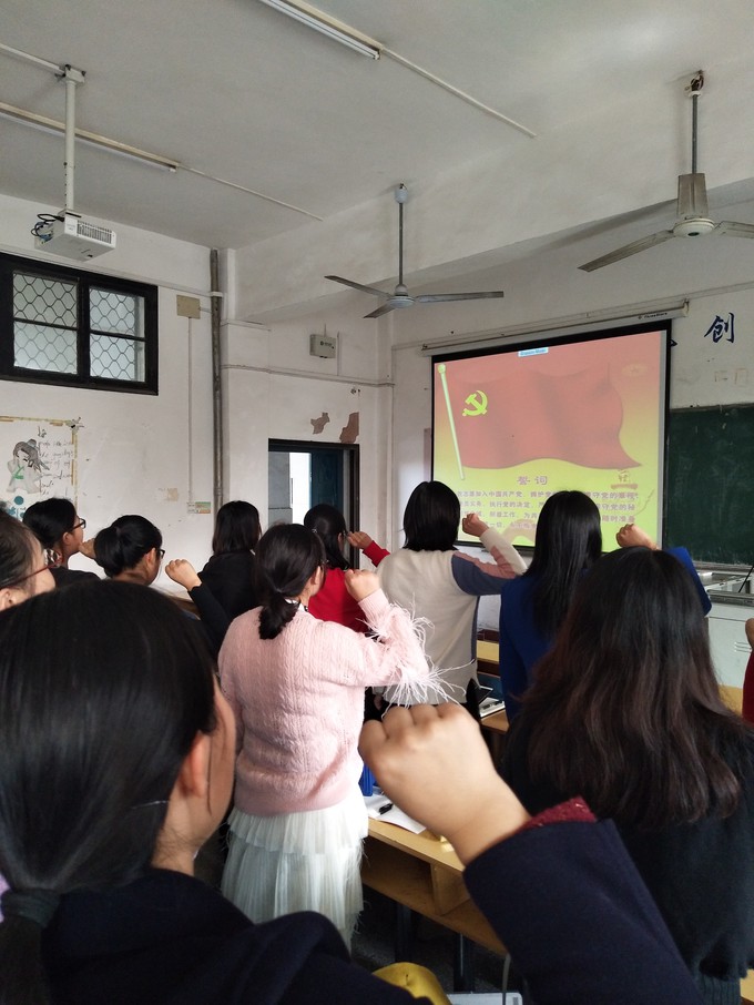 首次,郑老师带领全体党员面对党旗,重温入党誓词。