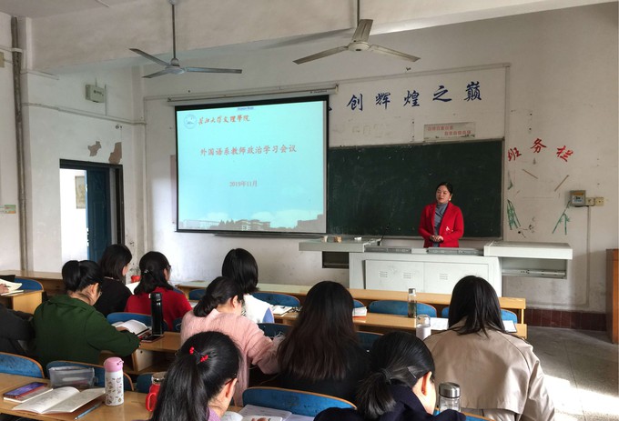 (通讯员 拓颖)11月14日下午一点,外国语系在一教二楼207教师开展十一月政治学习、支部主题党日活动和党性分析大会。会议由外国语系付春霞老师和郑新蓉老师主持,系全体教师参加。
