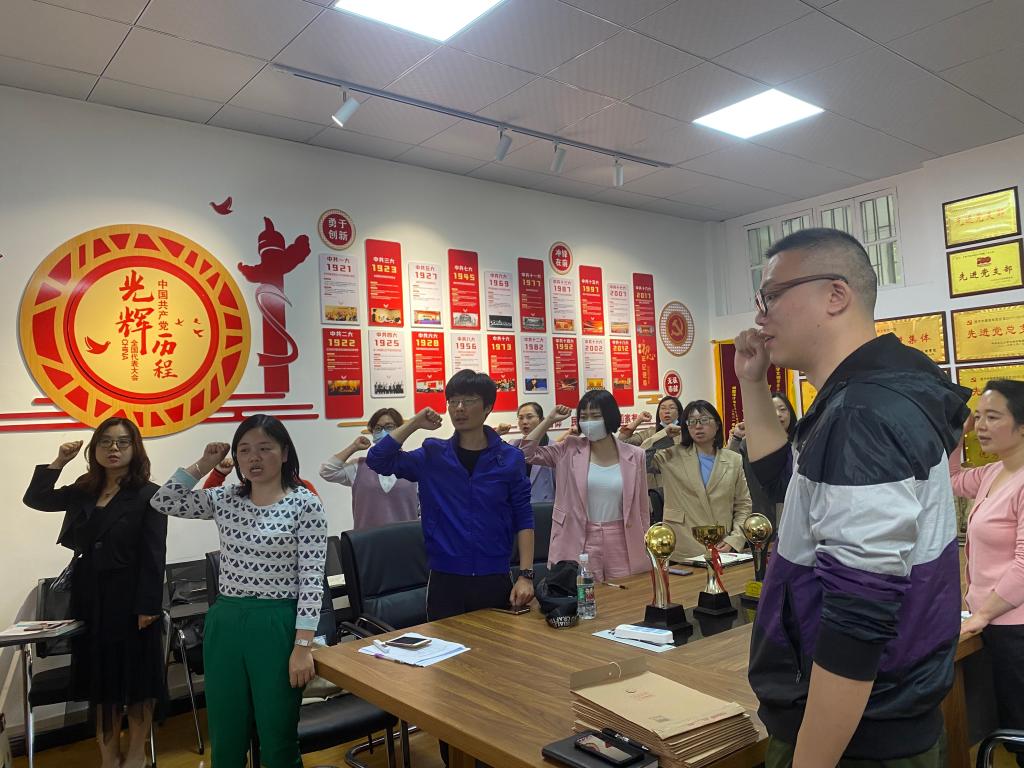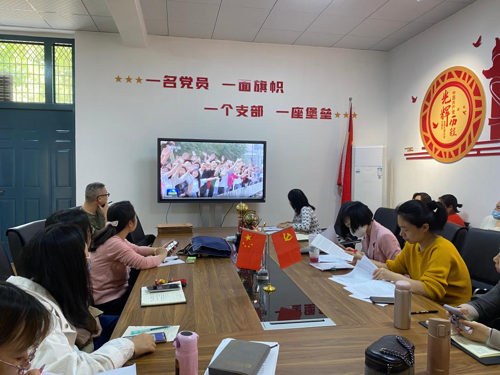 随后,付春霞带领全体党员重温入党誓词,集体诵读《中国共产党党章》第五章。大家集体观看视频习近平在庆祝中国共产主义青年团成立100周年大会上的讲话。最后,党员教师开展主题研讨:今年是师德师风建设年,结合自身岗位,谈如何做一名先进思想文化的传播者、党执政的坚定支持者、学生健康成长的指导者。