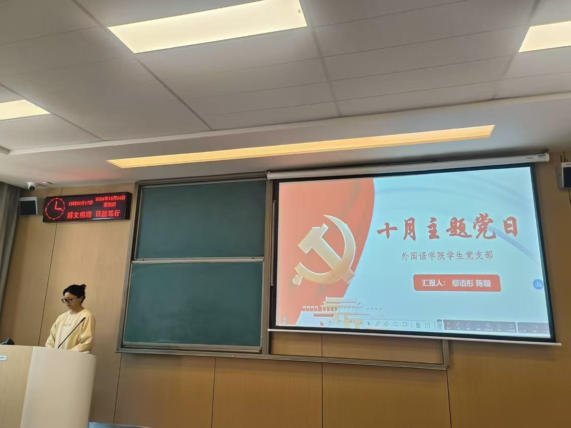 本网讯(通讯员 陈璇)2024年10月24日下午15:00,外国语学院学生党支部在教室C-324开展十月主题党日和政治学习。此次活动主题为持续深入学习贯彻党的二十届三中全会精神。此次活动由鄢语彤同志和陈璇同志共同主持。