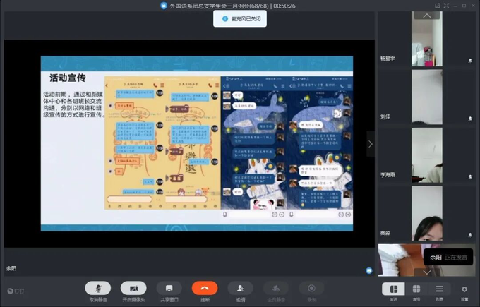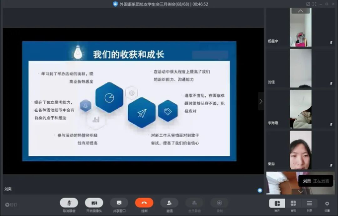 (通讯员王希千)因受疫情影响,外国语系团总支学生会于4月11日下午两点在钉钉app上召开三月例会。