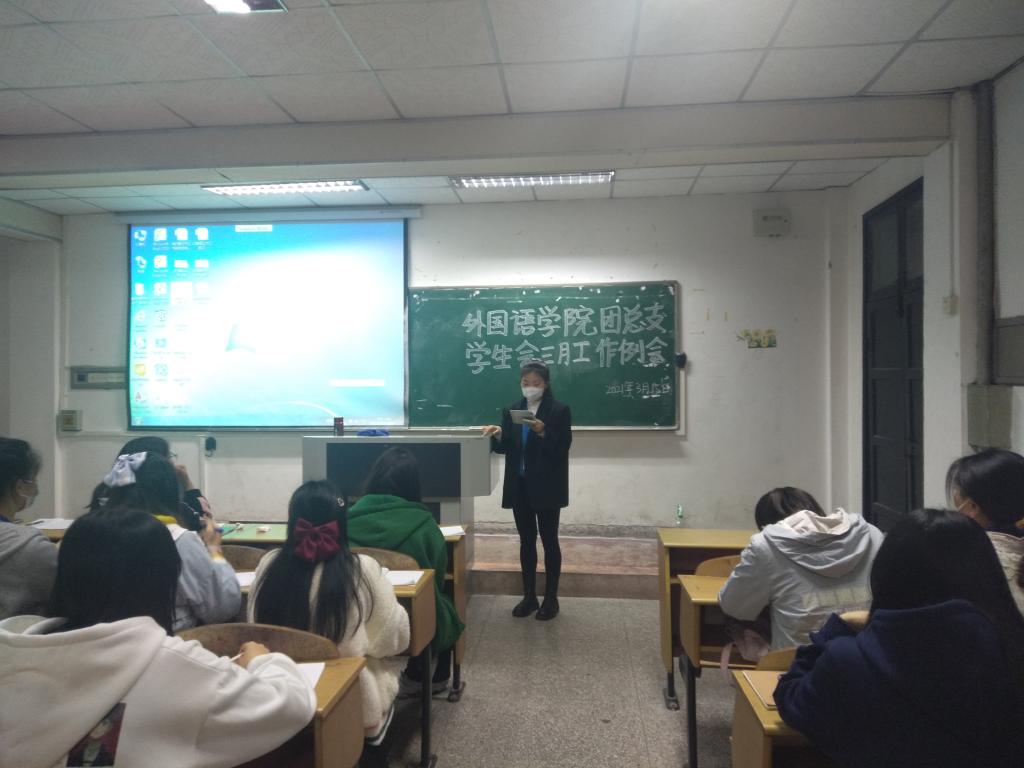 (通讯员 赵欣雨)3月15日晚上7点,外国语学院团总支学生会于一教308教室召开三月工作例会,外国语学院团总支学生会全体成员参与本次会议。