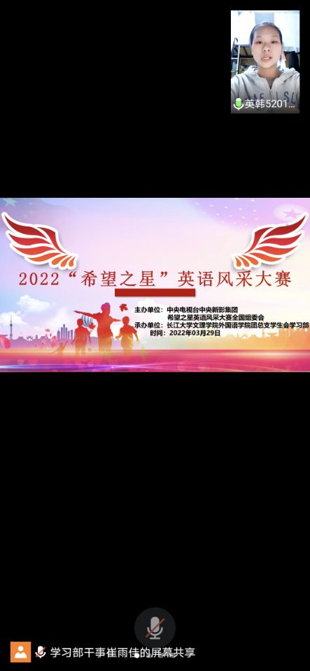 (通讯员 杨吉)3月29日,由中央电视台中央新影集团和中国人民大学出版社,希望之星湖北省组委会和湖北省演讲协会英语演讲专业委员会联合主办,williamhill官网外国语学院团总支学生会学习部承办的2022年度“希望之星”英语风采大赛圆满结束。本次比赛由石从红老师和高璇老师担任评委。