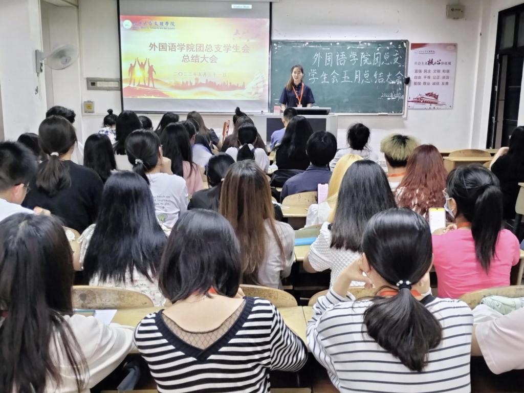 (通讯员 高业萌)5月31日晚6点30分,外国语学院团总支学生会于一教308召开五月总结大会,学生会全体成员参加。